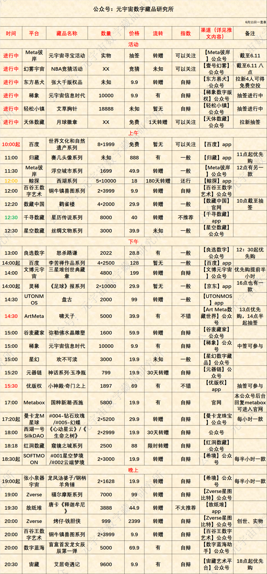 6月11日數藏上新預告丨超多平臺上新,一覽表記得保存!