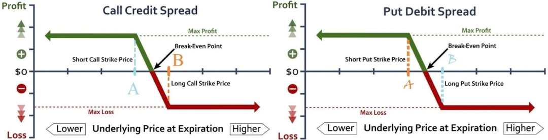 熊市價差有兩種類型:熊市看跌期權價差和熊市看漲價差。兩種策略的工作方式相同:以一個行權價買入期權,以較低的行權價賣出同等數量的期權。通過這樣做,這些價差為適度看跌的投資者創造了有限的利潤和有限的損失的交易策略。