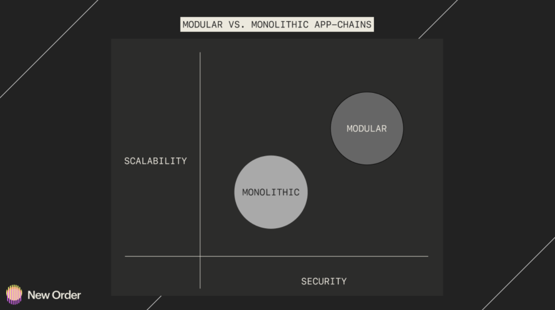 目前,單體應用鏈是很多應用程序的首選,因為這允許它們自由地創建自定義邏輯和智能合約,同時實現更好的執行。此外,應用鏈擁有自己的區塊空間,因此它們不必在執行上與其他鏈競爭。但這并沒有達到它可能達到的效率。使用單體式區塊鏈架構,如基于模塊化軟件(例如 Cosmos)構建的應用鏈或作為完全單體式應用鏈(例如 Avax 子網)限制了它們降低交易成本和增加計算吞吐量的能力。