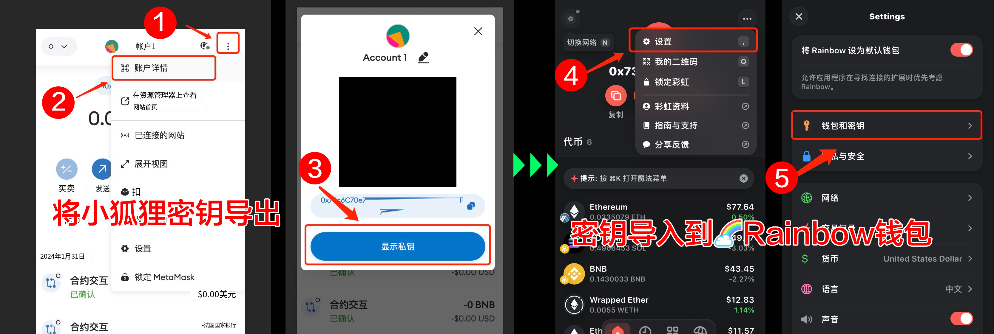 如何將其他密鑰導入Rainbow錢包,操作流程如下: